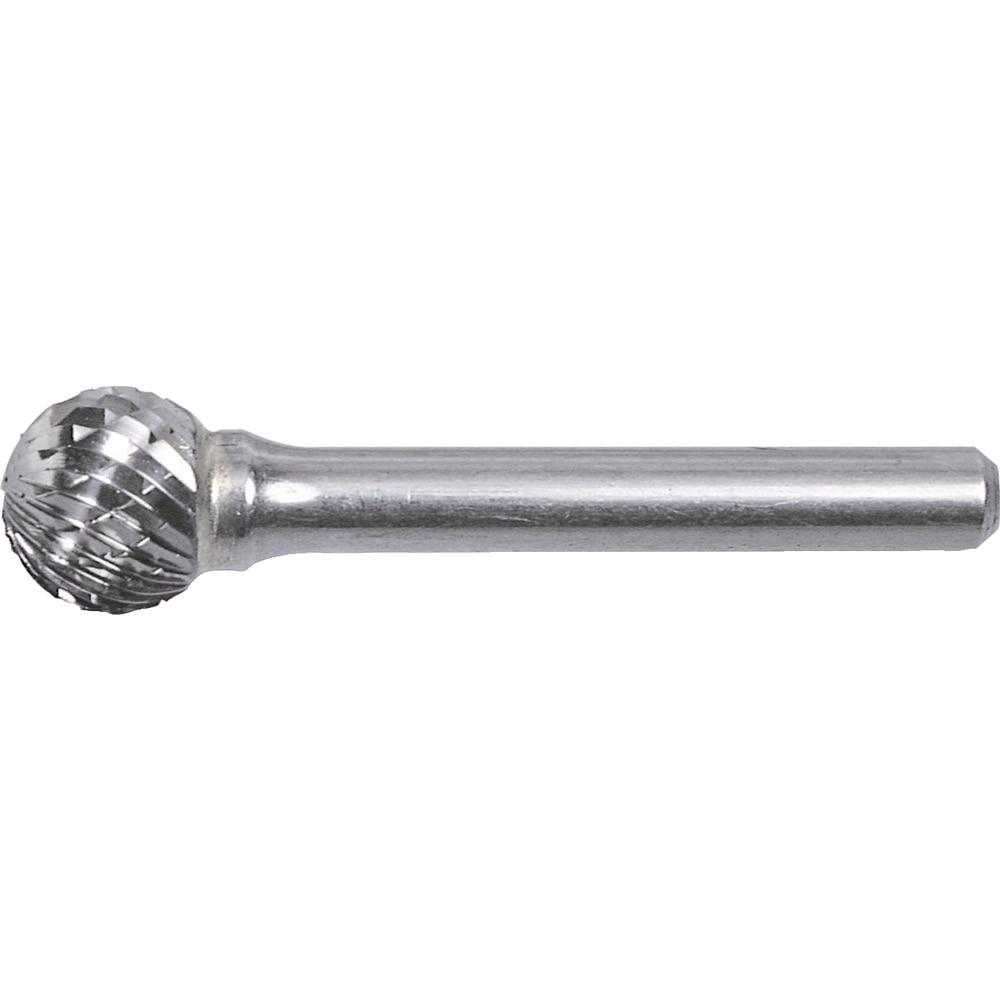 Ball Shape All sizes are nominal with a 6mm shank unless other wise stated Cut Numbers Cut 6 Double Cut Crosscut and double cut to improve control and chipbreaks Manufactured from high grade tungsten carbide for generalpurpose use Cut 9 Chipbreaker Chipbreaker fast stock removal for improved control and reduced chips for use on hard materials ie steel alloy 50RC 60RC carbon and cast iron Suitable for deburring and polishing of cast iron cast steel carbon steel alloy steel and stainless steel etc up to HRC65 hardness Please note Work piece and tools should always be steady and well supported Carbide burrs are not suitable for milling large amounts of material they are for light stock removal and high revolutions LOW FEED HIGH SPEED Always ensure that at least 70percent of the shank length is clamped by the collet or chuck of the tool being used Always ensure that the tool is rated to the recommended operating speed of the burr