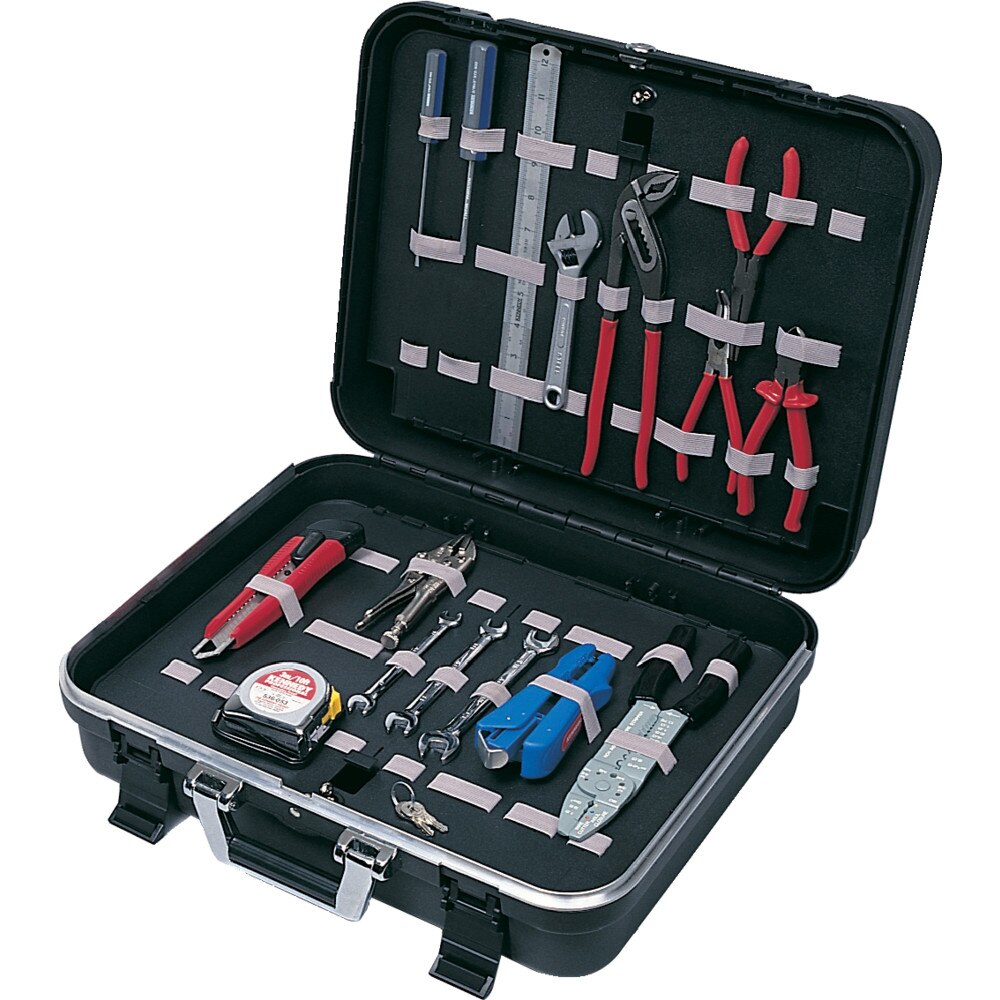 Ribbed high strength plastic case with aluminium reinforced trim Two fitted and hinged tool boards with elasticated tool retaining loops Lockable with two keys Padded carry handle Spare Kennedy Accessories available here Plastic Catch 5677606 Locks With Keys 5677609 D Shape Case Handle 5677612 Upper Tool Board 5677664 Lower Tool Board 5677666