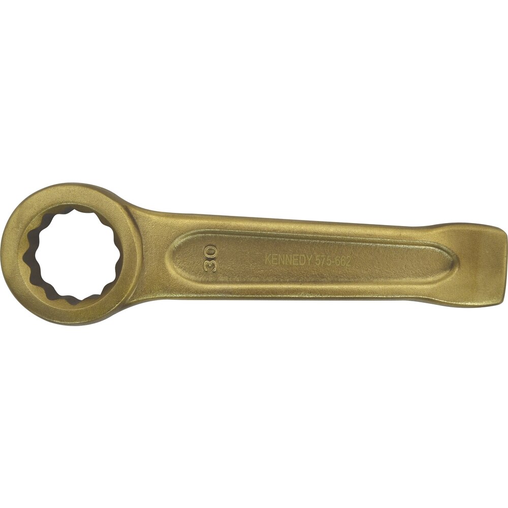 Ring End Slogging Wrench With flat striking faces to allow hammer blows to be used to loosen or tighten stubborn fasteners Sparkresistant tools are used to eliminate the chances of accidental fires or explosions in potentially combustible or explosive environments They resist the sparks that a standard tool could potentially create when striking hard surfaces The use of spark resistant tools is essential in many industrial applications such as petroleum and chemical manufacturing spray booth operations the marine industry the mining industry the paper industries or any location where flammable vapours or combustible residues are present Aluminiumbronze spark resistant safety tools are manufactured to 25HRC and offer a breaking strain of 75 85kgfmm2 Sparkresistant tools must be maintained with special care Frequent cleaningredressing to remove ferrous particles or contaminants which may impair the sparkresistant properties is essential